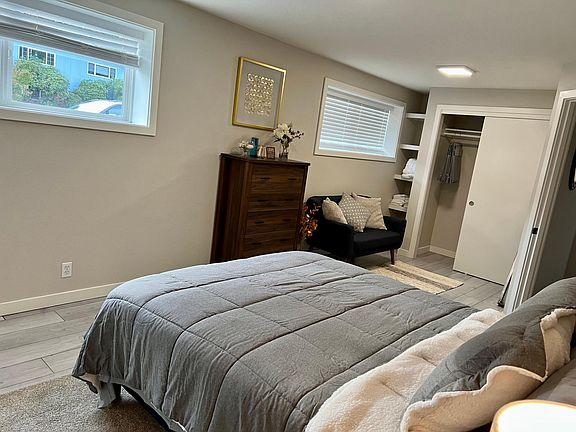 Beautiful, bright, and newly remodeled daylight basement unit in a safe area. Great location on a lovely quiet street. This unit has 2 large bedrooms, a gas fireplace in the living room, new flooring, paint, new lovely kitchen and bathroom. Washer and Dryer attached to unit. This unit also features lots of light, big front and back yard with a deck and sauna. Ground level private main entrance, and a fully fenced back yard. Come see this beautiful unit, you will want to call this home! Pets are welcome with restrictions. Pet deposit $250 Owner pays for garbage and internet.