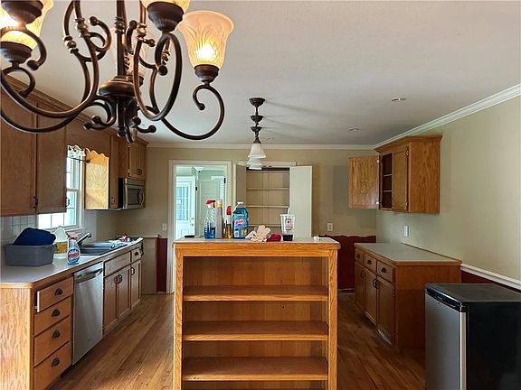- Ceiling Fan(s), Kitchen Island, Pantry, Stained Cabinets