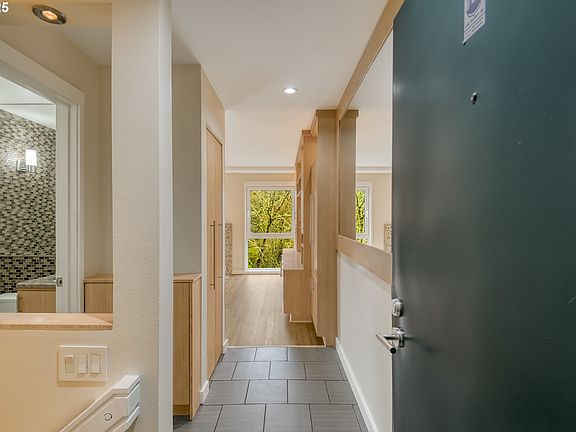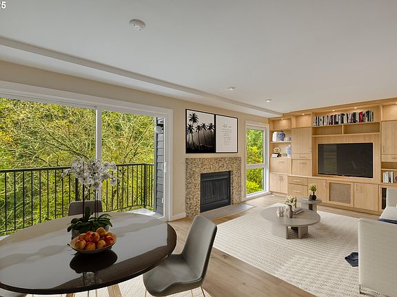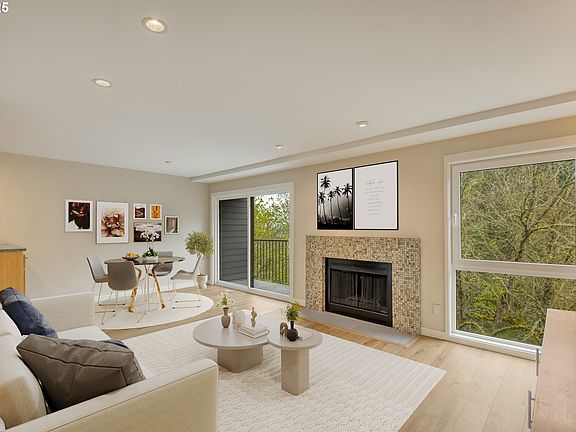 Enjoy the views of City and trees from a private deck. This 2-level, 2 bedroom, one and a half bath condo has been remodeled throughout. Built-in Bamboo entertainment center, surround sound system, updated kitchen cabinets, granite counters, stackable washer /dryer, heated towel racks in bathrooms and stainless-steel appliances. Some photos are virtually staged. Just minutes to downtown PDX, OHSU and Portland State University.