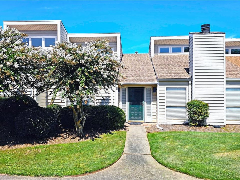 Newly renovated spacious Single Level Condo with 3 bedrooms 2 bathrooms in sought after Villas at Parkaire, a peaceful, friendly, Swim and Tennis Community. This home offers New Luxury Vinyl Flooring throughout, freshly painted, new doors, vaulted ceilings, lots of natural light, large dining/family room with stone fireplace, eat in Kitchen with New Stainless Steel appliances and laundry closet with Washer and Dryer. Enjoy the privacy of a split bedroom design with a Primary Suite with large Walk In Closet and luxurious ensuite bathroom. Two additional bedrooms with new sliding doors opening onto a large private patio that is great for morning coffee, grilling or entertaining quests. Attached is a two car carport with easy access to the kitchen. There are plenty of parking spaces available for visitors nearby. The Community offers two swimming pools; one unique round soaking pool and tennis courts are just a short walk from the front door. Pickleball courts are also near the club house and other swimming pool. Low maintenance; HOA covers exterior maintenance including roofs, water, sewer, trash pickup, termite bond and insurance on the building. Shopping and restaurants are not far, including Merchants Walk, waking trails by the Chattahoochee River as well. This property is price to sell quickly and is ready for you now. Come see today.