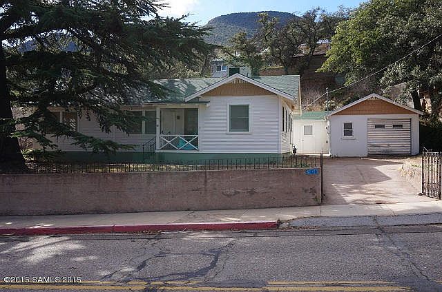 Great Historic Bisbee location! Awesome curb appeal, well maintained property, over sized lot, garage, ample off street parking, workshop & laundry room! This home has a spacious living & dining room with vaulted ceilings, french doors to a large rear deck, lots of windows & light. Remodeled bathroom, central HVAC, wood floors in the living, dining room & both bedrooms. Cozy front porch,lovely views, mature landscaping & quiet area. Level entry & handicap ramp at the back door. Tax records show that the home was built in 1944, the owners say 1920, as they are only the 2nd owners! This property is a contributing structure to the historic district. Make this your primary residence & receive up to 1/2 off your property tax bill. All facts,figures,msrmnts approx & to be verified by the buyer.