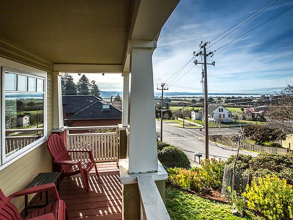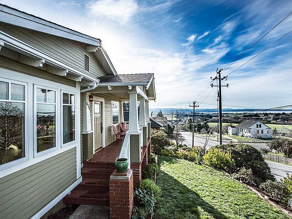 Gorgeous Kash Boodjeh designed Craftsman Bunagalow in desirable Bayview location, featuring views of Humboldt Bay and Arcata. Extensively remodeled with too many features to list, but includes kitchen with maple cabinets, Blue Star wall oven, Sub Zero fridge, granite countertops w/ inset copper sink, pantry, dining room w/ built-in buffet, Douglas fir doors and trim, white oak floors, Velux Sun Tunnels, Arroyo Craftsman interior lighting, Robern bath lighting, Grohe kitchen & bath faucets, Bosch dishwasher, Halo LED task lighting, master bedroom with bay view, French doors to master bath w/ stone floors and countertops, spa tub w/on-demand Rinnai water heater, drought and deer resistant established landscaping w/irrigation and drip system. Seller financing available w/35% down.