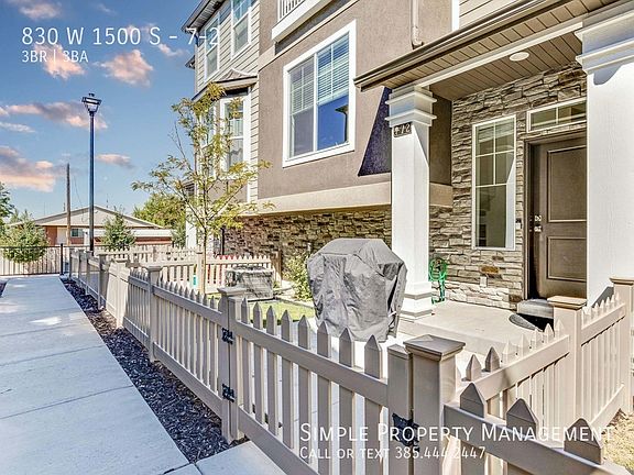 SCHEDULE A GUIDED TOUR: Gorgeous 3-BD townhome in highly the highly desirable community of Olde Towne Center in Woods Cross! Excellent build quality, constructed by Brighton Homes. Wonderful floor plan with a beautiful open concept kitchen/dining/livingroom area and vaulted ceilings on top floor. MAIN FLOOR: -Open kitchen & dining area. -Livingroom. -Half bath. TOP FLOOR: -Large bedroom/suite with private bath. -2 additional bedrooms. -Full bath. -Laundry (appliances included!) ENTRY FLOOR: -Garage access. -Mudroom. HVAC: -Central heating & AC. GARAGE & PARKING: -2-car garage. SERVICES: Tenant responsible for gas and electric. Rent includes water, sewer, trash. OTHER: Advertised rent rate based on a 12-month term. Security deposit equal to one month of rent and is due at lease signing. Includes non-refundable portion of $250. Tenant required to maintain renters insurance at all times. All adults required to apply. $45 per applicant due with application. Lease documentation fee of $50 due at lease signing. One pet allowed with $500 deposit (refundable) and $50/mo pet rent. Washer/Dryer In Unit