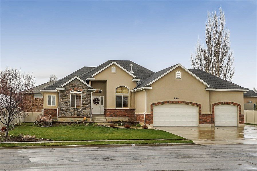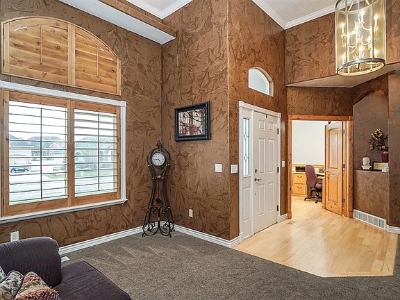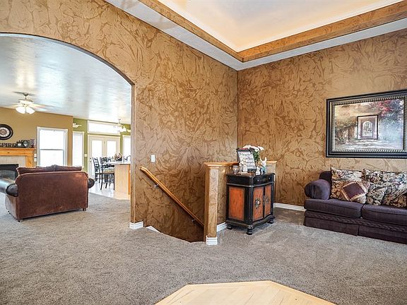 Bring your pickiest buyers to this beautiful, super clean Rambler! Located in a well maintained neighborhood. Feels like a brand new home and it's all in the details. 14' ceilings in the formal living room with professional faux leather painting, recessed custom lighting, real knotty alder plantation shutters and double crown tray ceiling. Desirable master split floor plan. 10'ceilings throughout main floor. Newer carpet and paint throughout. Chiseled Travertine tile. Newly finished maple hardwood floors. Private den with knotty alder wainscot paneling and plantation shutters. Spacious kitchen with stainless appliances and solid surface counter tops. Covered back deck with a gas line for the BBQ. Spacious great room with cozy fireplace. Elegant master bedroom with double crown tray ceiling. Master bath has double sinks, separate garden tub and shower, and a walk in closet. 6 Huge bedrooms with built in shelving. 3.5 baths. 42" wide hallways. Laundry/mud room with sink off the 3 car extra deep garage. Large downstairs family room with fireplace, real knotty alder trim and crown molding. Wired for surround sound and plumbed for your future kitchen. Walk out to the back patio. There's a sizeable driveway with a concrete RV pad. Triple pane windows. Sound proof insulation in family room walls with all interior walls insulated for extra energy efficiency. Furnace is zoned with separate thermostats up and down. Look no further! You've found the one!
