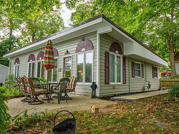 Adorable low maintenance Princes Lake home! This 2 bed, 1 bath sits directly on the water with hardly any steps! 60 feet of waterfront on quiet White Lake. Fish and swim off the large dock just steps from the patio. Beautiful water views from almost every room in the house! Wood laminate in kitchen, family room and dining room. New furnace in 2019, new roof in 2019, new A/C in 2016. 14' x 24' detached garage and an additional huge mini barn. NO HOA!