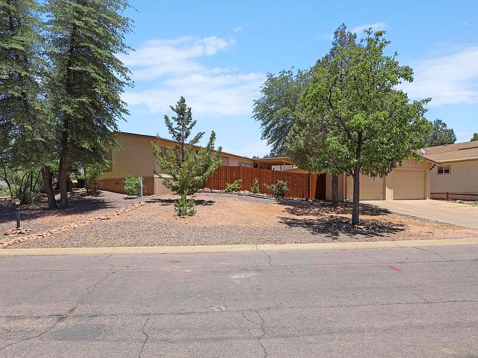 This Woodland Meadows home features 3 bedrooms, 2 baths, vaulted ceilings, wet bar, dual sided fireplace in the living room/dining room, a detached two car garage, spacious covered porch, fenced yard, and a drip system perfect for your plants.