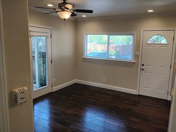 RENTED-NO LONGER AVAILABLE Cozy 2-bedroom, 1-bathroom house offers a warm and inviting atmosphere with dual-pane windows, recessed lighting, and rich mahogany laminate flooring in the living room and kitchen areas. The updated kitchen features stainless steel appliances and plenty of cabinet space. The bedrooms and living room are equipped with ceiling fans for year-round comfort. Full remodeled bathroom with shower tub combo. Enjoy the convenience of the washer and dryer (hookup only) on the side of the house. Step outside to a fenced yard, perfect for a little garden or outdoor relaxation with a Storage unit nestled in the corner. 2 Dedicated parking spaces to the side of your front door. Street parking for visitors. Easy access to Hwy 101, close to downtown Santa Rosa, Restaurants, Santa Rosa Plaza, and the Roxie Stadium 14 movie theater. Water is included in the rent. No smoking or pets Owner pays water.