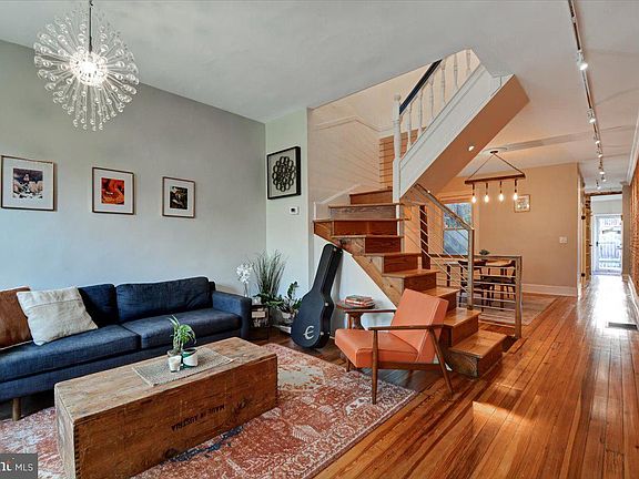 Come see this wonderful upgraded home in Hampden that is a beautiful marriage of traditional details and contemporary flair.  The entry foyer has retained the original tile floor and wall tile that are typical of homes of this vintage.  The home has beautiful original hardwood floors and high ceilings throughout while the bathrooms have been updated.  One entire wall of the first floor is exposed brick that runs from the front of the house to the rear of the kitchen.  Lighting has been added to allow artwork to be properly lit for emphasis.  There is upgraded lighting throughout the home. The living room has tall windows in the bow front that bring in lots of natural light.  The stairs going to the second floor have a contemporary look that combines with the original railings as you progress to the second floor.  The dining room is large for family gatherings and feels very open as you approach from the living room.  There is an upgraded bathroom on the first floor that has tile walls and a tile floor with an historic clawfoot tub with a shower.   The kitchen was upgraded and includes stainless appliances with tall cabinets for storage and hard surface countertops. There is a pass through from the kitchen to the adjacent room behind the kitchen that allows for a couple stools for causal eating and for additional storage.  As you progress upstairs, the large primary bedroom has tall windows in the bow front.   There is a ceiling fan with lights in the bedroom.  An operating transom window for circulation that was preserved above the door to the bedroom.  The middle bedroom has a window that brings in light and can be used for a bedroom, office or nursery.  There is a ceiling fan with lights in the bedroom.  There is an operating transom window above the door to the middle bedroom for circulation.  The second floor bathroom has granite walls and floors and has been upgraded.  There is a large spa tub with a shower.  The rear bedroom overlooks the rear yard.  There is a ceiling fan with lights in the bedroom.  The backyard is a wonderful space to enjoy outdoor living.  It could be converted to a parking space should you decide you wanted to add off street parking as several others on the street have done.  There is a spacious family room on the lower level of the house that has large windows in the front. This home is very convenient to walking to enjoy all of the benefits that The Avenue in Hampden has to offer.  There are restaurants, bars, shops and lots of unique offerings that are unique to the Hampden neighborhood.  The home is convenient to I-83 and access to downtown or to the suburbs to the North.  Hopkins University, the Rotunda, The BMA are all close and accessible.  The area is charming and offers an exciting and vibrant lifestyle.  This home will go quickly.  Schedule an appointment to see 830 Wellington Street at your earliest convenience.  Seller provided Home Warranty provided.