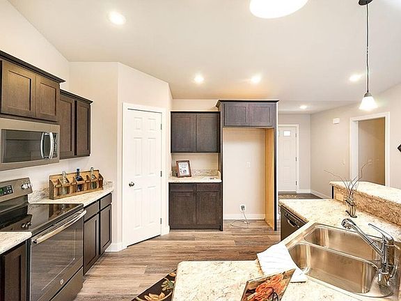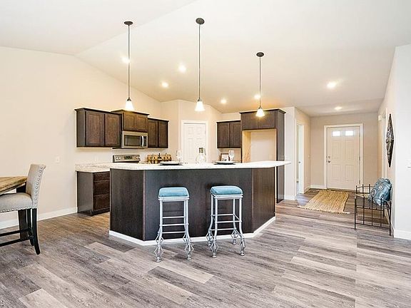 Special pricing on model home! Open floor plan w/vaulted ceilings opens to kitchen, large wrap around island & corner pantry. Dining area with door to private patio which you can fence for added privacy. Master bedroom: double sinks, 3/4 bath & walkin closet. 2 more bedrooms & full bath. Main floor laundry/mud room, 2 car garage (easy to finish, its insulated & sheet rocked). HOA: snow removal, lawn care, ext maintain, insurance & water, $150 month.