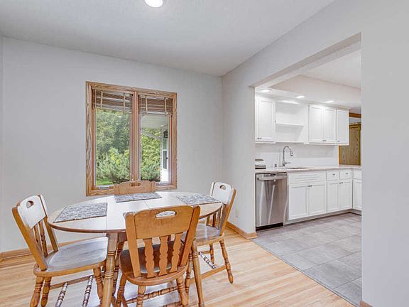 Beautifully updated rambler on a large corner lot offers excellent curb appeal with new concrete driveway, sidewalk, and front steps in 2012. Sizable living room sunlight from the large energy efficient dual-pane windows and newly refinished hardwood floors that extend throughout the main level. Remodeled kitchen with brand new stainless-steel appliances, many soft closed cabinets with updated hardware, and subway tile backsplash. Large main level family room with new carpet, cozy wood burning fireplace and 10 ft. vaulted ceiling. Remodeled lower level with added insulation in the ceiling and bedroom walls for added sound proofing and warmth offers a large family room, huge 4th bedroom, storage room and workshop! Home offers an extremely high efficiency condensing furnace (97-98%), dual-stage compressor A/C unit, and high-quality AO Smith water heater.