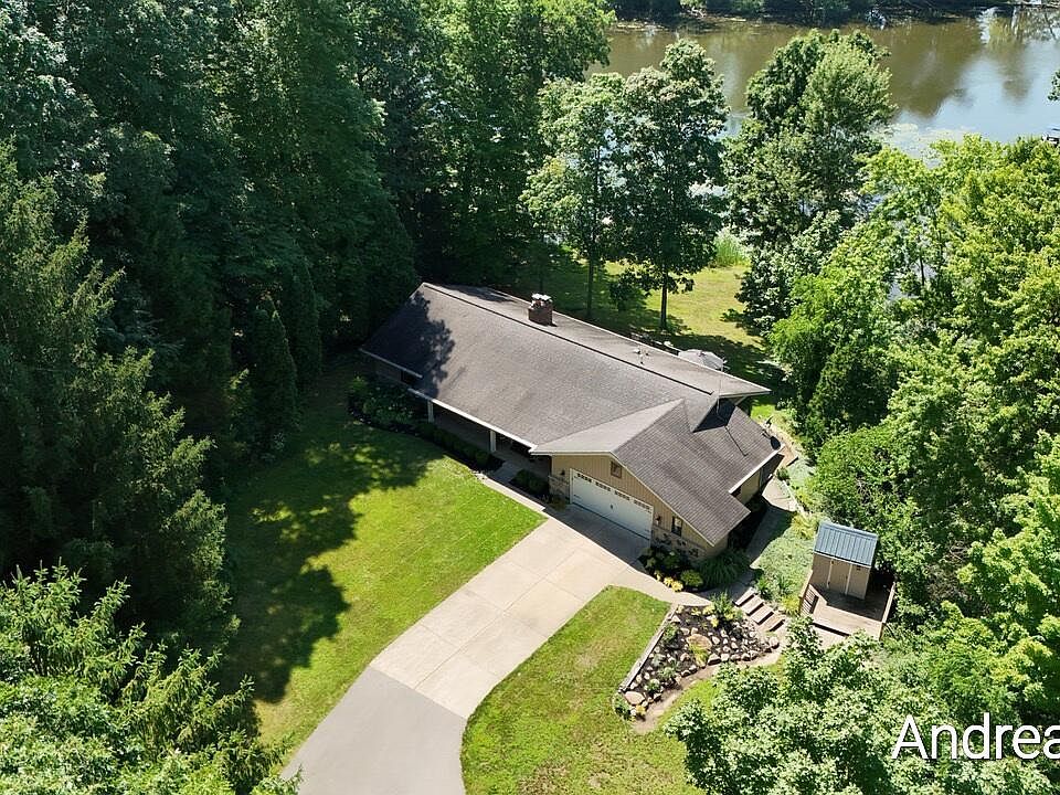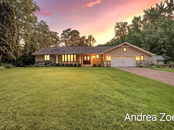 Welcome to a stunning 3bedroom 2.5bath ranch nestled on the Thornapple River. Pride of ownership shines throughout this property. This extraordinary home has been completely remodeled offering a perfect blend of tranquility, luxury & convenience, surrounded by lush landscape, mature trees, wildlife, and 750ft of waterfront for ultimate views and river access. Close to schools, airport, trails, shops, dining & entertainment. Discover as you enter under a canopy of trees along a smooth driveway, the peaceful beauty of a flowing creek on your right, while on your left the aroma of pine and view of life in the woods ~ deer, turkeys, fox, squirrel, birds, ducks, geese & cranes. Outbuilds hold yard & recreational gear. Step inside the home to immediately experience a breathtaking view of the... ...of the manicured backyard & river through large NEW windows. NEW EVERYTHING... windows, floors, gourmet kitchen with appointed storage & spring loaded Rev-A-Shelf (holds KitchenAid mixer), huge bathrooms with walk-in tiled showers and soaking tub. Fireplaces up & down warm and add ambiance during our winter wonderland season. The screened-in porch is the most popular room to rest, read and enjoy the view. Parading kayaks. Floating fisherman. Swirling swans and Sunning turtles. The deck and yard are perfect for entertaining with composite material for no maintenance and glass "railing" panes for clear views of the river. Don't miss your chance to own this exceptional property. Schedule your private tour with Andrea today