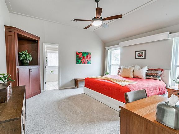 Step into this lovely home with soaring high ceilings and countless custom touches throughout. Enjoy brand new carpet, a fully upgraded electrical panel, and all-new kitchen appliances. The newer roof and recently updated front and side fences add peace of mind. Situated on an oversized lot, this home offers walk-in closets in every bedroom, while the master suite boasts dual closets, double sinks, a shower bench, and a relaxing jetted tub. With a neighborhood playground just steps away, this home is perfect for making memories. Come see it and fall in love today!