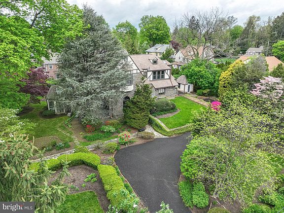 For the discerning buyer seeking a one-of-a-kind home overflowing with distinctive character, abundant space, and magazine-worthy architectural details, 8300 Cedar Rd presents an enticing offer. Sitting on a sprawling half-acre corner lot, this 5,072 sqft Tudor home has 4 bedrooms, 4.5 bathrooms, a finished basement, multiple flex spaces, 2 sunrooms, a sauna, a patio, and a private backyard. A curved driveway guides you through the manicured lawn, lush shrubbery, and mature trees toward the stone exterior's main entry. Inside, a vestibule leads you to a foyer. To the left, a wrought iron railing overlooks the grand living room that is the showpiece of the home. Framed by beautifully aged hardwood floors and soaring ceilings with exposed beams, a curved staircase descends into the bright and airy space where stained glass windows, beveled glass French doors, and a plaster fireplace add interest to every corner. Off the living room is a study with built-ins and a huge sunroom displaying picturesque views of the grounds. To the right of the main foyer, dark wood trims the large dining room that has ample space for entertaining friends and family. An arched door connects to the gleaming gourmet kitchen, fitted with lots of cabinet and counter space, high-end appliances, and two sinks. A mudroom with a second entrance from the driveway sits off the kitchen. Completing the main level is a powder room and a family room with dramatic vaulted ceilings, a fireplace mantel, and sliding doors that open to the rear patio. Up on the second level, the hotel-like primary suite has a bay window bench, multiple custom closets, and a luxurious ensuite bathroom boasting dual vanities, a whirlpool tub, a glass-enclosed shower, and a water closet. Two more large, bright bedrooms, a second sunroom, and another full bathroom are off the hall. Topping the home is a large fourth bedroom with its own full bathroom. Bonus living space can be found in the expansive basement, where there are two flex rooms, a laundry room with exterior access, a full bathroom by the sauna, and a large unfinished space ideal for storage. In addition to everything inside, the lush backyard acts as a private oasis where you can spend cool spring days tending to your garden and host barbecues and al fresco dinners on warm summer nights. 8300 Cedar Rd's utilities include central a/c, gas heat, electric baseboard heat, and gas hot water. Brand new 5-Zone gas boiler installed February 2025 with brand new thermostats throughout and an extended warranty. This fantastic Elkins Park location is close to popular shopping centers, parks, universities, and medical centers. There's also easy access to Township Line Road and Old York Road. Schedule your tour today!
