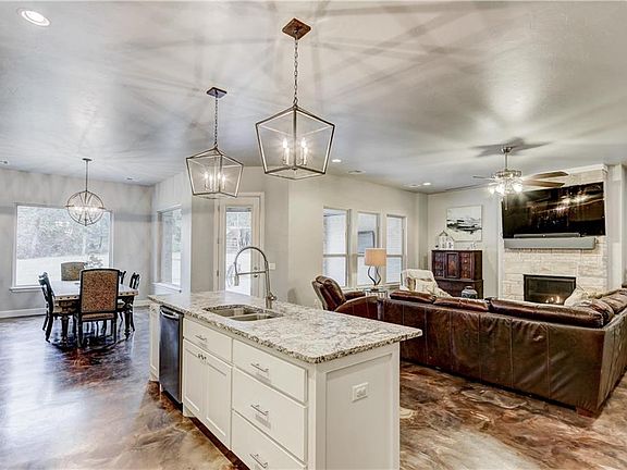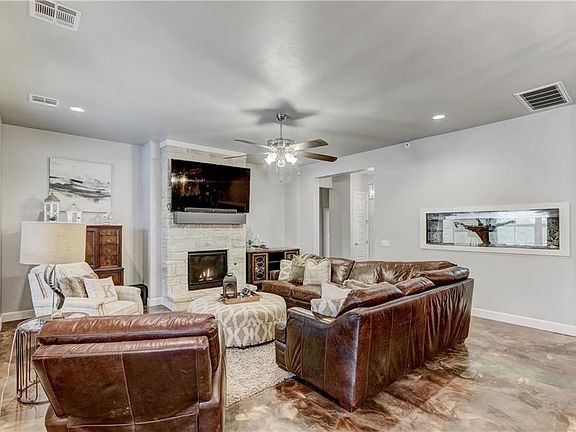 Very nice home in the back of the addition on a culdesac lot ~ Flooring in the house looks like marble but it's epoxy! The home was designed for a family with Huge built-in Frigidaire Fridge, Large Center Island w/Leathered Granite Countertop, Gas Cooktop, Double Oven & Walk-in Pantry! One dining room but large enough for a Formal Table ~ Master Suite has Double Sinks, Oversized Whirlpool Tub, Massive Shower & a Walk-in Closet anyone would die for that has access to the Indoor Utility Room ~ 2 Bedrooms have a Jack/Jill Bath ~ All Bedrooms have Ceiling Fans & Walk-in Closets ~ Covered Patio and Open Flagstone Patio with Firepit ~ The wall between the Living Room & the Office has a built-in Saltwater Fishtank that can be removed if you don't like it