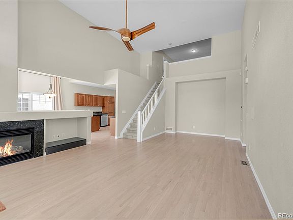 Welcome home to this highly sought after and stunning end unit townhome in Pelican Pointe, a wonderful community offering gate only access at night. This meticulously maintained residence offers a perfect blend of modern updates and cozy charm with 3 bedrooms and 3 updated bathrooms. Upon entering, you are greeted by vaulted ceilings, a gas fire place, and beautiful hardwood floors that enhance the spacious feel of the main floor. The main floor master bedroom features a beautifully updated 5-piece master bathroom, providing a luxurious retreat. The remodeled upstairs loft includes an extra bedroom with a full updated bathroom perfect for guests. The gourmet kitchen boasts cherry wood cabinets, complemented by stainless steel appliances and ample counter space, perfect for preparing meals and entertaining guests. A highlight of this home is the 10x10 finished bonus room just off the patio offering versatility as a home office, media room, or additional storage space. Outside, enjoy the tranquility and convenience of being steps away from the High Line Canal trail ideal for outdoor activities and relaxation. This property is also in close proximity to Lowry Town Center offering great shopping, restaurants, and local businesses. For just $50/month you can enjoy the Tava Waters Community and recreation center and enjoy their pool, fitness classes, climbing wall, and much more. This move-in ready home is a rare find and won’t last long on the market. Schedule your showing today and experience the comfort and convenience this property has to offer!