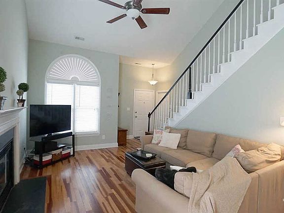 Beautiful 3br master down townhome style condo in fantastic N Raleigh location! Features hardwood floors, gas log fireplace, granite countertops, tile backsplash, and stainless appl in kitchen. Tons of storage in large walk in closets and garage. Master closet has beautiful wood organization system. Refrigerator, washer, and dryer incl! Deck overlooks private greenspace, unit at end of cul-de-sac! Walk to grocery, salons, dining, shopping! Hurry!