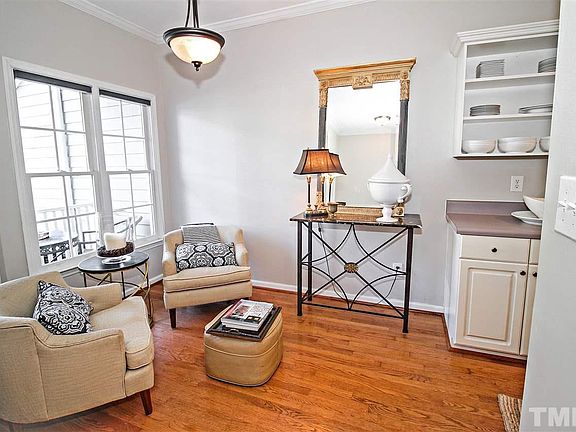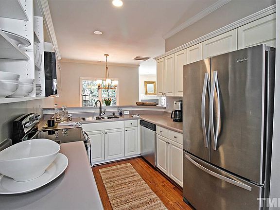 Enjoy your life with this no maintenance condo that lives like a town home. 3 bedroom/2 bath, 2 story condo with attached garage, covered deck, large front porch. Fresh paint throughout. New appliances, new carpet. Hardwoods throughout first floor. Bedrooms are all nice size. Gas log fireplace. Breakfast bar. Spacious master w/private bath. Great location close to shopping and easy commute to RTP and RDU. Seller is related to agent.