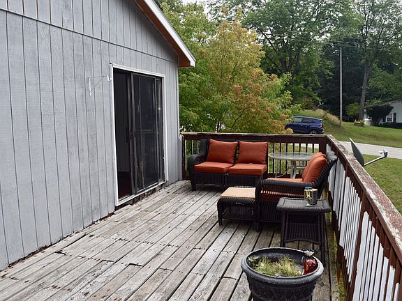This house is perfect for anyone who is handy or dreaming of "flipping" a house like on HGTV! This 3-4 Bedroom, 2 Bath home on 1 Acre in Onekama needs mostly cosmetic fixes. The roof was replaced in 2018, and the furnace and hot water heater are both updated and well maintained. A creek runs thru the back of the property and there's a detached, drive thru garage as well as a fire pit area and a shed in the huge backyard. Enjoy Portage Lake views from the living room and large deck. The basement is currently 1/2 basement and 1/2 attached garage but could be converted to all basement for more living space. Walking distance to Onekama School, restaurants, EZ Market, Portage Lake and only minutes from Lake Michigan. This would be a solid investment or a desirable family home with a little TLC.