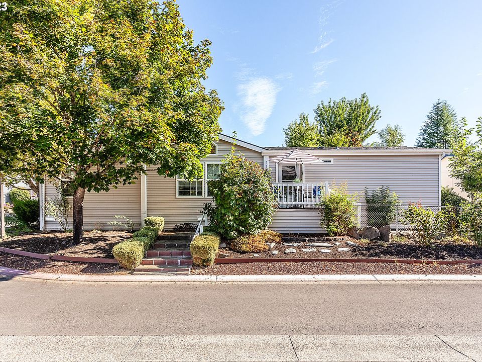 Enjoy this move-in ready manufactured home in an all-ages park. With just over 1500sqft this home offers 3 bedrooms, 2 bathrooms, a garage and great curb appeal. Feel a bit of privacy as the home is situated towards the back of the park and on an elevated corner lot. This home has vinyl siding, double pane vinyl windows, a large garage with tall ceilings, beautiful granite countertops in the kitchen and natural lighting throughout. The yard is fully fenced! Back on market at no fault to the seller or home.