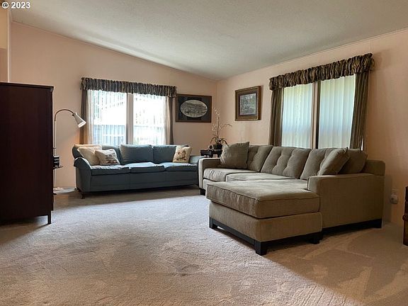 1991 Well Maintained manufacture Home. 1512sq. ft. 3 bedroom 2 bath. GREAT FLOOR PLAN Location: Creekside of Hillsboro Mobile Estates. Park is for all ages. Monthly space rent $895.00 - Water, Sewer , Garbage not included. March 2015: New windows, new sliding door and new roof. December 2020: New heat pump/Cooling System & furnace. February 2023: New washer and dryer. This home has lots of living space with plenty of storage, Nice large kitchen, Spacious bedrooms with the primary bedroom w/ master bathroom, walk in shower & soaking tub. Large deck in the back, great for family BBQ's. Fenced yard and Lg. storage shed. Low maintenance landscaping. Park allows 2 small pets under 25Lbs. The play ground area is located at the front of the park. Pathways for walks. Extra parking for guest.