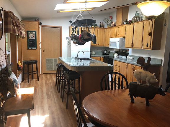 Well maintained 3bdr. mobile home in Park. Lg. open kitchen w/island & pantry including double sinks, great for entertaining. Skylights, vaulted ceilings, new laminate wood flooring, new paint inside and out. New carpet in bedrooms. Large Master Bedroom with walk in closet,soaking tub, full shower. Large Laundry Room. Washer and Dryer optional. New roof down to wood in 2012. Park rent $733