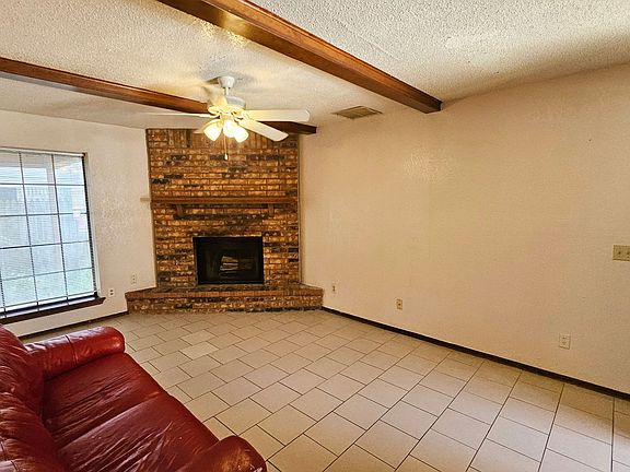 Fully fenced yardNicely sized bedroomsInterior laundry areaFloor-to-ceiling brick fireplaceCovered patioPlenty of cabinet storageAmple prep space