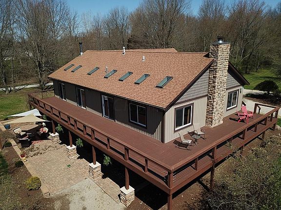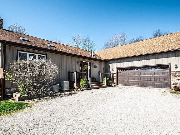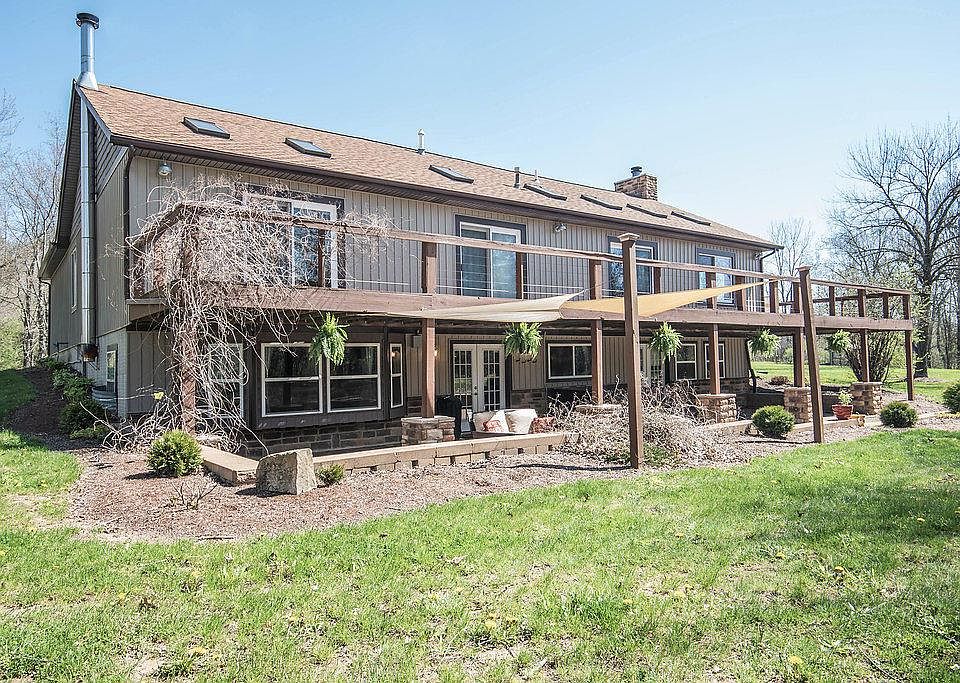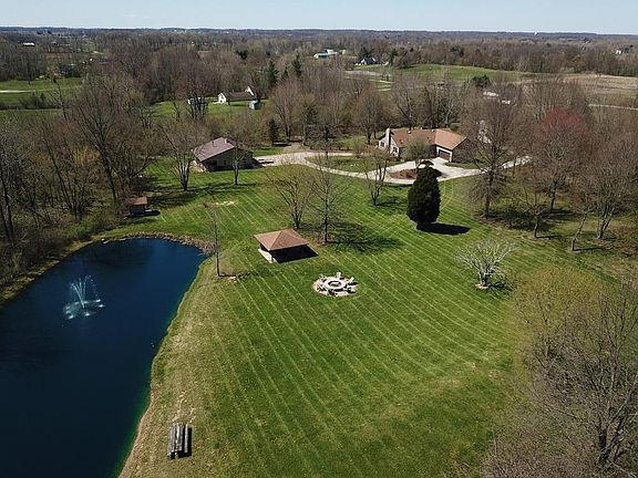 Over 3500 sq feet in this beautiful ranch home with 4 bedrooms, 3.5 baths on nearly 12 acres. Much desired open layout with access to the wrap around deck. The kitchen has granite tops and a nice breakfast bar that overlooks the dining area and living room with stone fireplace. Large owner's suite with dual closets, claw tub and walk-in shower. The walk-out basement features a theater room, rec area (pool table) and bar that leads to the paver patio. The property boasts a wrap around driveway, pond with fountain and a 40'x40' barn (concrete floor) with dual overhead doors. The covered patio by the pond has electric, water and cable hookup and is perfect for grilling and chilling. Easy access to I-70 and Granville.
