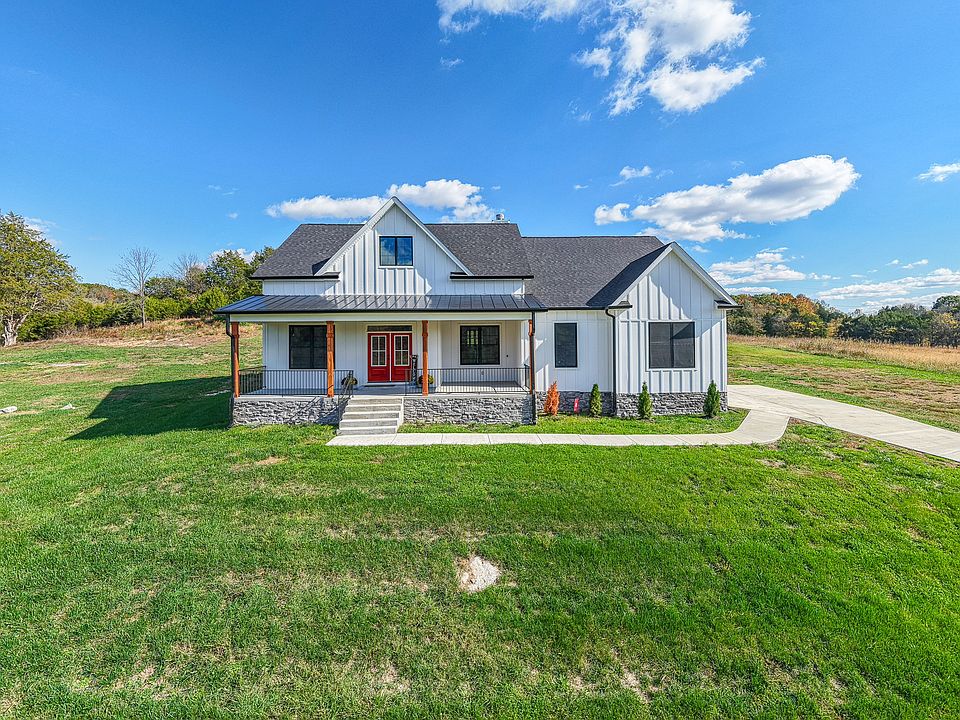 Southern living at its finest! This stunning 2,700 sq ft custom home nestled on 5 beautiful acres with tons of road frontage near Lebanon Square. Thoughtfully designed for easy one-level living, with only a bonus room and bath upstairs. Features include high-end finishes, quartz countertops, a soaker tub, walk-in tile shower, and warm wood accents throughout. The primary suite opens to a covered patio overlooking rolling pastures and mature trees — perfect for morning coffee and peaceful views. Cozy up by the wood-burning fireplace, or relax knowing there’s a storm shelter/safe room combo for peace of mind. Outdoors, enjoy covered patios perfect for morning coffee, an oversized two-car garage, and optional well on the property ideal for irrigation. Experience rural serenity with the convenience of town — truly as Southern as apple pie and sweet tea!