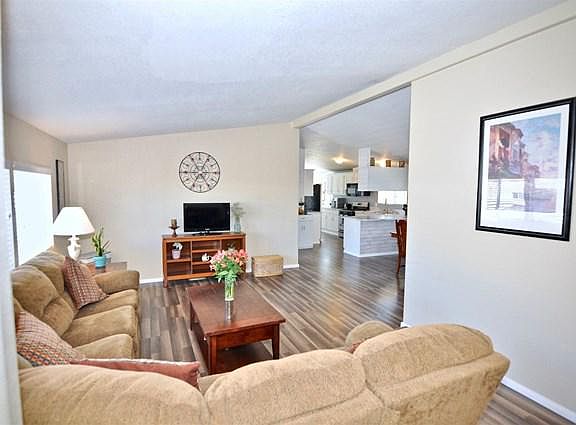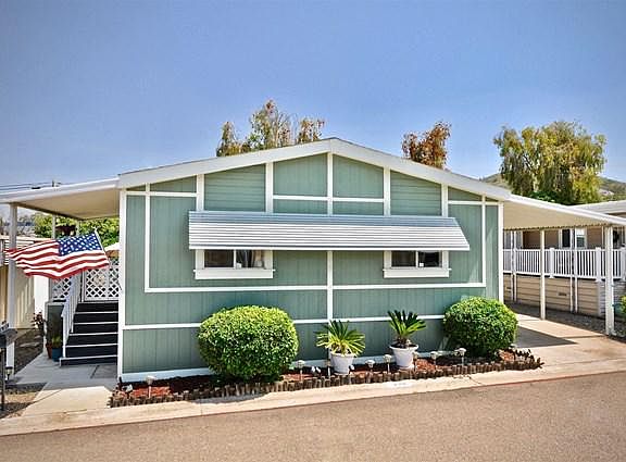 Rare 4 bedroom, upgraded home, in wonderful senior 55+ Meadowbrook park. Look at all this new stuff: New AC 2018, New laminate flooring kitchen, dining, living room and hall 2020. New kitchen counters 2020. New kitchen sink, garbage disposal & faucet 2020. New blinds in master bed, bath, kitchen, dining and living room 2020. New laminate flooring in master bedroom 2021. Bathroom counters 2021. Check out the way the carport and backdoor are set up because there is plenty of room for parking 2 cars and still have room to spare without the steps being in the way. This lovely home is move-in ready and just waiting to be called your new home. Close to all and easy access to the 52 and 125 freeways. Santee is a little bit country but still within close distance to San Diego and surrounding areas. Time to downsize, this is just the place. Need a 2nd home for the winters away from the cold, this is just the place. 2 pets allowed. 2nd person can be 45+.
