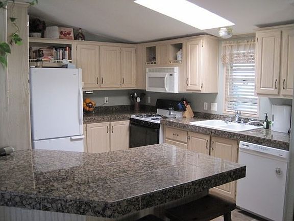 This elegant manufactured home on a great corner lot is just waiting for you. You'll love the beautiful upgraded kitchen with granite counters and oak cabinets. Designer touches and upgrades throught. Wheel chair friendly in this 55+ park.