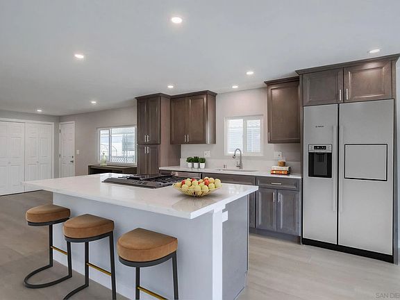 - Ceiling Fan, Kitchen Island, Recessed Lighting, Remodeled Kitchen, Cathedral-Vaulted Ceiling