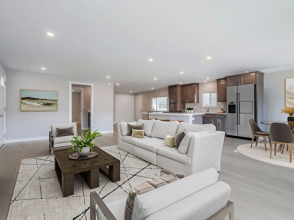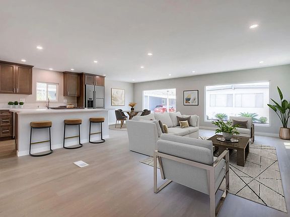 Completely renovated home in Meadowbrook, a popular 55+ gated community! Enjoy a brand-new eat-in kitchen with island, Stylish new baths with a walk-in, sit-down shower in the master, and a spacious great room with two living areas. New windows flood the home with natural light. Entertain on the large side deck, steps from the community pool, spa, and clubhouse. Features include easy-care outdoor maintenance and a gated side yard for your pet. A must-see gem!