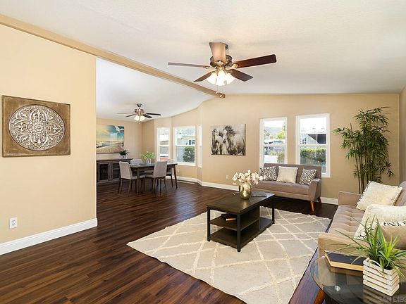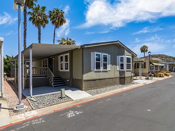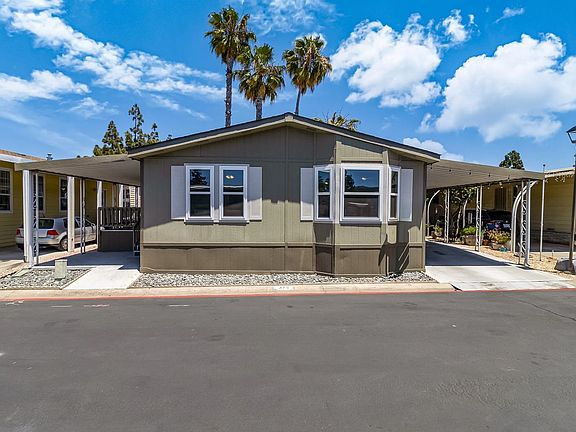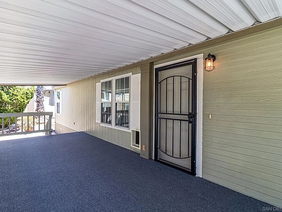 Located in the gated Meadowbrook 55+ community in Santee this beautiful home is updated and completely turnkey. This 3 bedroom 2 bathroom home provides just under 1400 square feet. Freshly painted inside and out with brand new outdoor carpeting, a brand new roof and brand new windows you will see the pride of ownership from the moment you pull up in front of the home. Be greeted by gorgeous hard flooring in the common areas and plush carpeting in the back bedrooms. The updated chefs kitchen hosts an island, granite countertops, beautiful tile backsplash and updated cabinetry. With a custom built storage shed/workshop there is ample storage or an area for crafting and projects. The community features a pool and a clubhouse that hosts resident activities and events.