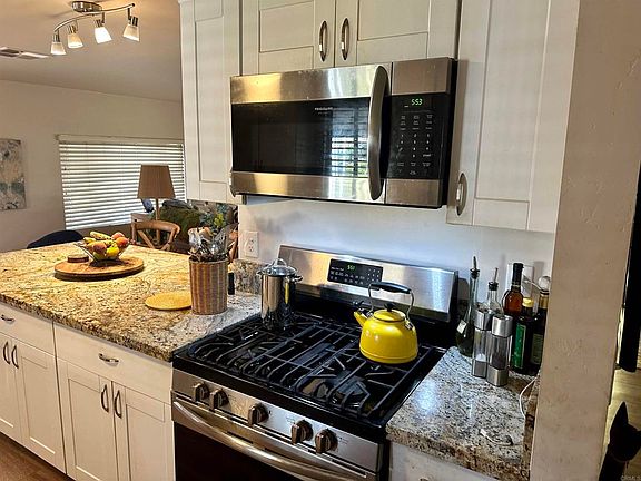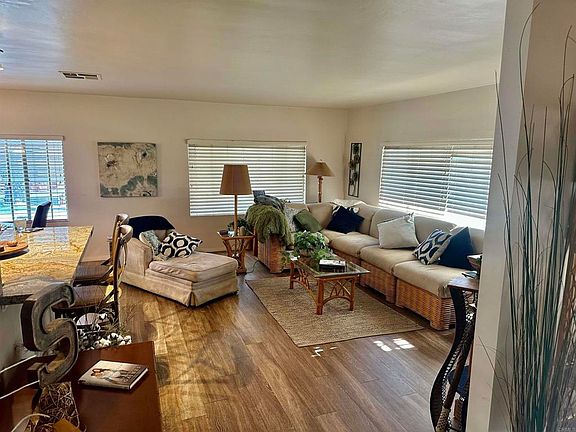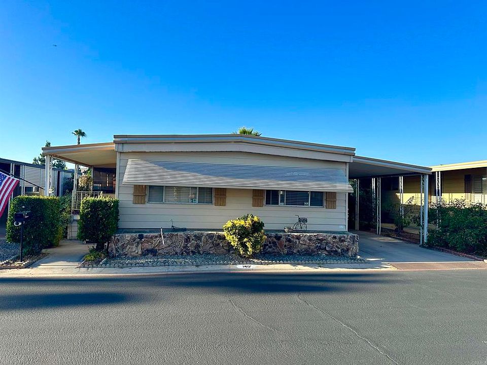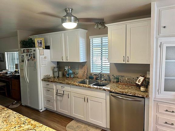 Santee living at its finest. Two bedroom two bath mobile home located in the Meadowbrook Meadow Home park in Santee. The updated kitchen, features new cabinetry, stainless steel appliances, granite countertops, laminate flooring. The guest bathroom has been completely remodeled with a tub shower combo. The closed in sunroom adds additional living space. Enjoy your morning beverage in the back patio area or on the citrus tree lined front porch.