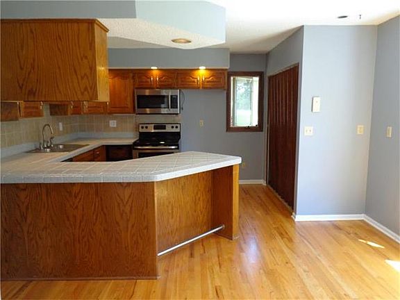 Great Hardwoods throughout in this 4 bedroom, 3 bath home in highly coveted Park Hill School Dist. Newly updated kitchen with New microwave, stove and oven. New interior paint throughout, rec room , bedroom and extra room on lower level. Flat back yard that backs to Weatherby Lake soccer field, 1 block from basketball courts and tennis courts.Hurry, this one won't last.!