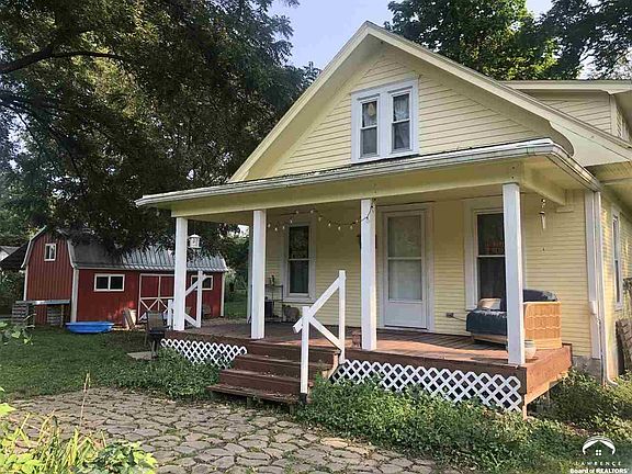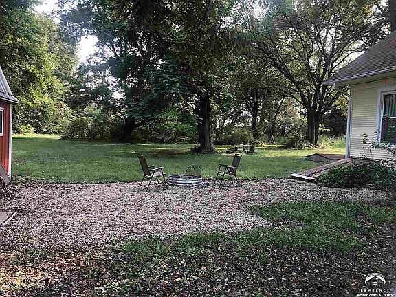 Country living at it's finest! Established blackberries, elderberries, apple tree, garden space, raise chickens or anything else you desire on this 1 acre of river bottom land. Bungalow has large kitchen, open floor plan living/dining with beautiful hardwood floors, updated full bath on main level and 2 BR with office space upstairs. Energy efficient wood furnace. Large 12'x24' metal shed & carport. Relax on the large front porch or enjoy an evening around the fire pit. 20 minutes to Topeka or Lawrence.