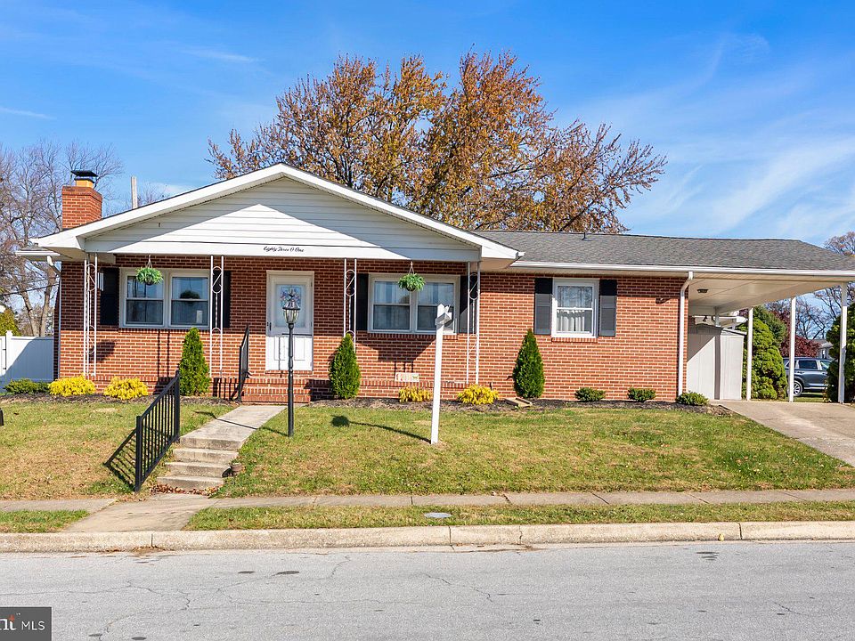 Charming Brick Rancher on a Corner Lot! Only one owner. You’ll fall in love with this lovingly cared-for 3-bedroom, 2½-bath brick rancher on a cheerful corner lot. Enjoy relaxing on the front porch or entertaining family and friends in the fenced backyard and patio area. There’s a one-car carport, a large storage shed, and two driveways—so parking is never a problem! Step inside to a bright and inviting living room featuring a brick wood-burning fireplace and beautiful hardwood floors (recently refinished!). The main level has been freshly painted, giving it a warm, move-in-ready feel. The kitchen overlooks the pretty backyard and has just the right spot for a cozy breakfast table. The primary bedroom offers its own private bath for extra convenience. Downstairs, you’ll find a comfortable finished lower level with brand-new carpet, a half bath, laundry, and utility area. (The fireplace here is decorative only.) This home has been well loved and it shows—come see for yourself! Seller is offering a Home Warranty. Selling the home as is.