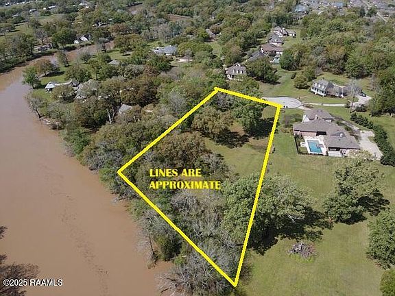 Last remaining vacant lot on the Vermilion River within the 2 adjoining residential subdivisions of Vermilion Lakes and River Bend! This beautiful 2+ acre site has about 268' of frontage along the west bank of the Vermilion River and the end of a Cul-de-Sac which offers ample privacy and no thru traffic and is just about 15 minutes south of Acadiana Mall. It features several large live oak trees throughout with an open building site on the back ridge, cleared and ready for building. Don't miss the opportunity to make this sought-after neighborhood your home!