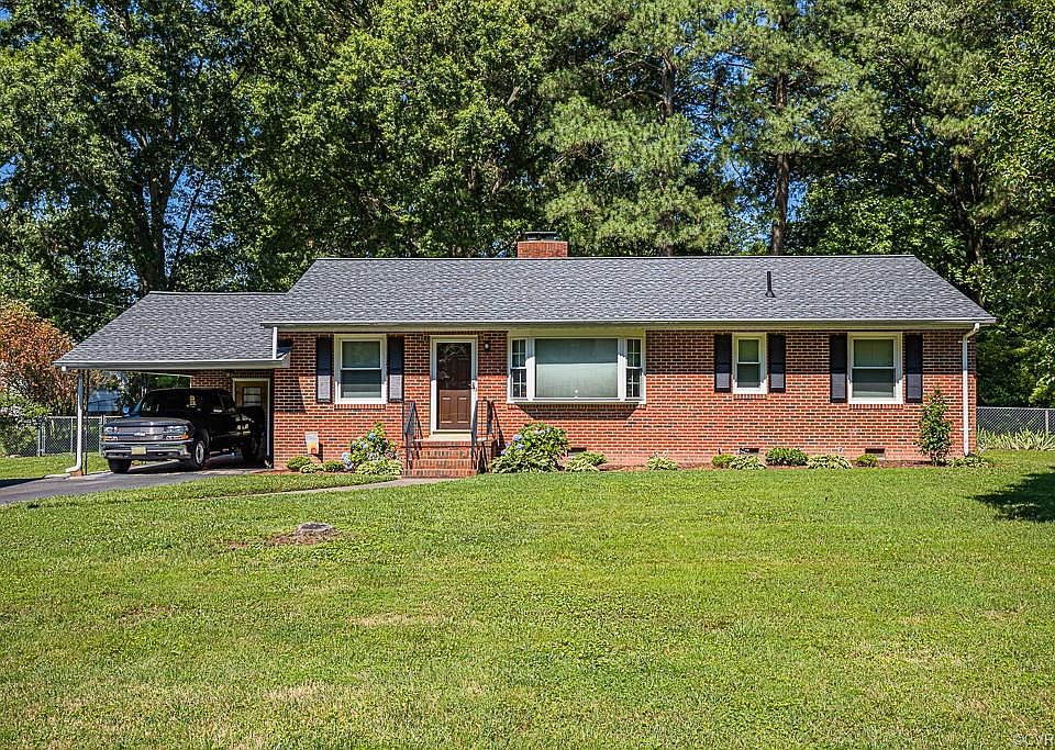 Adorable turn-key all brick rancher on a large lot conveniently located to everything RVA! The exterior offers a double width paved driveway with one-car carport, huge fully fenced rear yard that is private and serene and detached storage shed with electricity for additional exterior storage. Updates include replacement windows, newer HVAC system and newer roof (2017). The interior offers 3 large bedrooms, 1.5 baths & over 1,200 SF of living space. The brick living room welcomes you with hardwood flooring, brick wood burning fireplace and bay window. The eat-in kitchen includes tile countertops, tile backsplash and large eat-in area. There is also a dining room located off the kitchen with hardwood flooring, ceiling fan and chair rail molding. The master bedroom is roomy with carpet, ceiling fan and large closet. The two additional bedroom both have ceiling fans and large closets and one has hardwood flooring. There is also a large laundry room with shelving for additional storage space. This lovely home is centrally located near interstates, shopping, restaurants & more! Don't miss the chance to see this cute home!