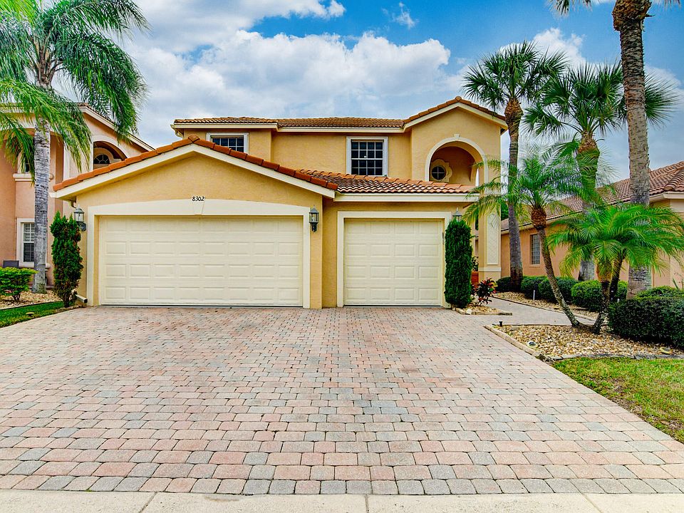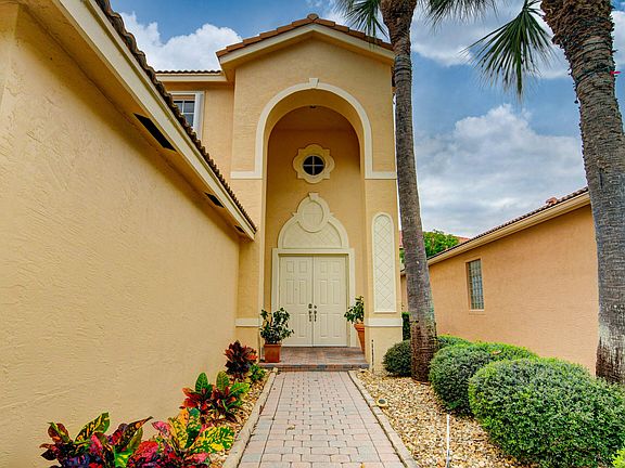 Beautiful Lakefront 5 Bedroom 4 1/2 Bath Home located in the highly sought after gated community of Isola Bella with A rated Schools K-12. Boasting a spacious open floor plan with 10 ft ceilings, 8ft paneled doors, and crown molding. The 1st floor bedroom is being used as an office/library easily converted back if needed. Granite countertops, stainless steal appliance's and a large island in the kitchen over looking the living room. Tiled flooring on the first floor with new wood laminate flooring up stairs. Large master suite has a trayed ceiling, very large his and hers walk in closets and a large covered balcony looking west to capture the most amazing sunsets South Florida has to offer. Two zone AC system both units replaced in 2017. A Great home in a wonderful community!!!