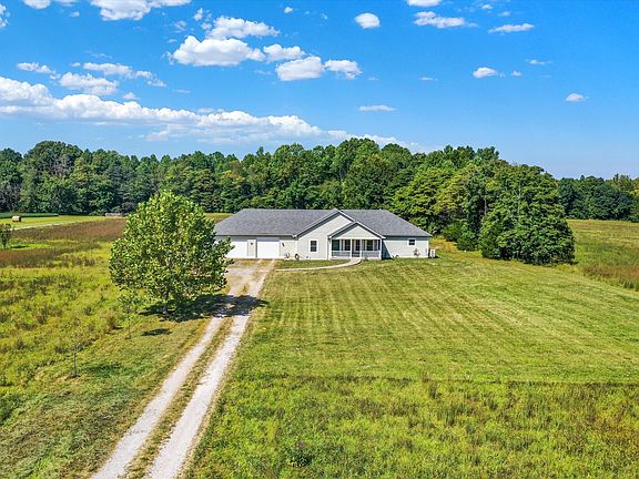 Custom-built ranch on nearly 13 acres featuring quality Amish craftsmanship throughout, including the kitchen cabinetry, built-in bookshelves, and bathroom vanities. Designed with accessibility in mind, the home offers wide halls, a main-level primary suite and living space, and a wheelchair stair lift to the full basement. The basement is exceptional, with 9' ceilings, daylight and egress windows, and plumbing roughed in for the future addition of another bathroom. Updates include two recently added tankless water heaters, a water softener, and the original gravity sump built into the home. Outdoors, enjoy a 2021 Trex deck with a transferable 25-year warranty, wooded acreage (with roughly half of the parcel wooded), hay fields, and frequent wildlife sightings. A nearby farmer currently maintains the hay fields and is willing to continue if preferred, or the new owner may use the space as they wish. A chicken coop with an established flock of approximately two dozen chickens may remain with the property if desired. A finished 3-car attached garage, ample storage, and peaceful surroundings make this a rare opportunity to own a truly versatile property.