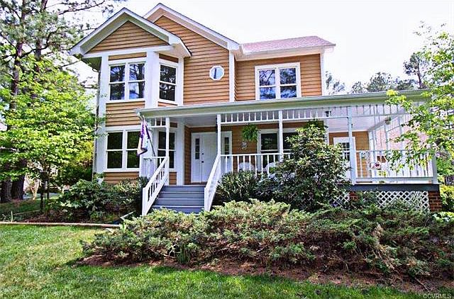 Don't miss this hidden gem in Bon Air! This charming 4 bedroom, 2.5 bath home features a wrap around porch perfect for relaxing and enjoying a good book or favorite beverage and it's very private; formal living room with bay window and hardwood floor, formal dining room with hardwood floor, family room with gas fireplace, hdwd floor and open to the bright sunroom that has built-ins and French door to the awesome deck, eat-in kitchen with bay window overlooks the beautifully manicured park like yard. A separate entrance from the driveway/garage side takes you right into the mud room, just off the kitchen and convenient to the powder room. A Spacious Master Suite with bay window; walk-in closet; new carpet and updated master bath; three additional bedrooms all with new carpet, nice updated hall bath completes the 2nd level. Large composite deck overlooks a beautiful and private rear fenced yard. Additional amenities include oversized 1.5 car garage w/bonus room above, Anderson vinyl replacement windows, freshly painted inside & out and new carpet. Put this one on your list to see before it's gone!