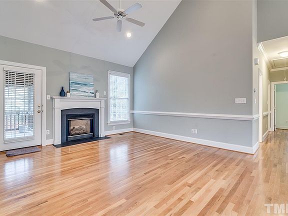 Bright and cheery one-level living in convenient south Durham location. Fresh interior paint, cathedral ceilings and fireplace in the family room, and hardwood floors throughout. Master suite has walk-in shower and separate tub. Welcoming front porch and back screened porch make wonderful outdoor living spaces. Two-car garage with built-in storage completes the package. Located next to neighborhood common space. Walk to Southpoint via the ATT trailhead just down the street.