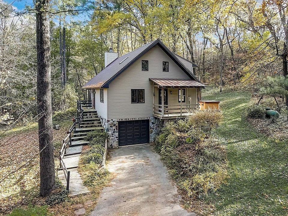Escape to your own charming cabin in the woods! You will fall in love w/ the setting & sweet amenities throughout including a huge shop (appx. 28'x59') for toy storage & workshop area w/ heat & convenient loading area! Beautiful beams greet you & your eyes will be drawn to the living rm w/ vaulted ceilings & stone fireplace w/ hand crafted mantle. Dining area leads to kitchen w/ hand crafted cabinets made from cherry harvested from the property! Down the hall is a nice sized 2nd bdrm w/ convenient laundry/full bath combo right across! Up the stairs find the loft office space leading to the expansive primary bdrm suite. LL holds a nice sized rec rm (missing flooring) & Full Bath! Outside enjoy the screened porch, deck & hot tub. This lovingly cared for 1 owner home is ready for you!