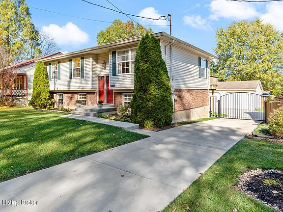 Charm Personified. Updates Galore! Spread out in the Open Great Room of the Kitchen, Dining & Living Room. So many beautiful Cabinets and Granite counter tops.Stainless Steel Appliances-Stove,Refrigerator,Microwave & Dishwasher, Porch off the dining area for your morning coffee , grilling & entertaining., 3 Bedrooms 2.5 Baths Lower level with Family Room.Approx 1988.Sq.Ft. for both Levels French doors off the Lower level bedroom out to fenced in backyard.Plus exit out additional door off the family Room. 2.5 Car Garage,Gated with easy turn around driveway. Furnace & Air Conditioning High Efficiency approx 4 years old .Newer Electric Panel .Seller will consider closing costs,prepaids, and or points. This would bring down the interest rate. Easy Access to I-265. Virtual Furniture