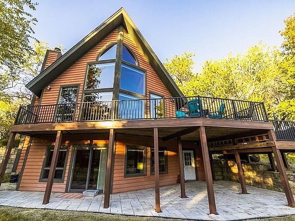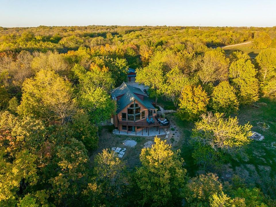 THIS PROPERTY IS A GEM!! Custom Built home with every detail designed by seller. Home constructed with timber frame and stress skin envelope paneling allowing high energy efficiency. Front bank of windows are solar passive, insulated concrete forms, geothermal heat pump. Beautiful wood design from top to bottom. TWO primary suites. 40 beautiful acres, gorgeous trees, 8-9 acres of pasture, area for huge garden, abundance of wildlife. Property lies adjacent to a bean field and backs to Lake conducive for great hunting area! 1+ acre of property is part of the lake. Private, seclusive property on chip and seal roads but easy access to all of KC area attractions. No detail went untouched when choosing and building this phenomenal home.Listed as 2 bedroom but square footage allows for several possibilities of additional bedrooms.