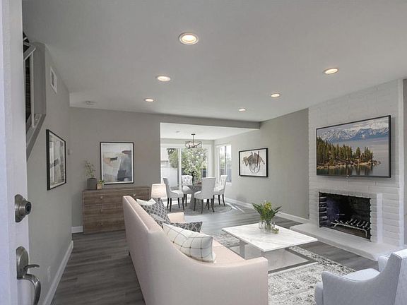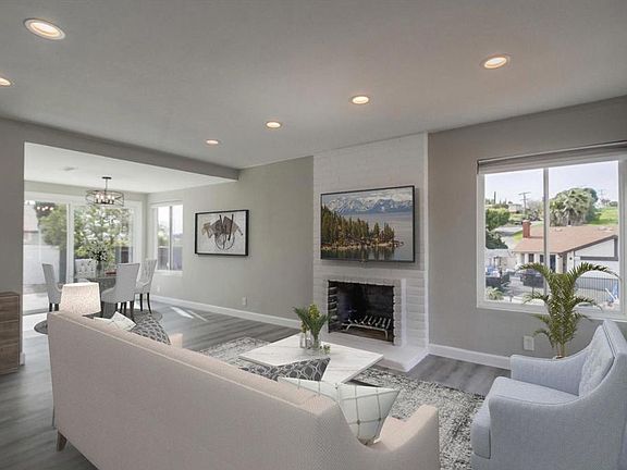Beautiful corner lot home on a hill with mountain views. Completely renovated with brand new furnace and central air. Brand new Whirlpool appliances. Brand new luxury vinyl plank flooring with new paint and baseboards throughout entire home. Newer dual paned windows .Brand new 40 gallon water heater. Quartz counters in kitchen and newer shaker style cabinets with soft close drawers .Quartz counters in all baths and newer vanities. Fireplace in living room that flows to dining area and kitchen. Room enough for everyone with FIVE bedrooms, mirrored closet doors and 2.5 baths which have all been retiled. Dual sinks in the primary bedroom. Drought tolerant landscaping with a huge fenced backyard and large patio for entertaining. Orange tree included. Close to schools and shopping, yet very quiet area. No HOA..
