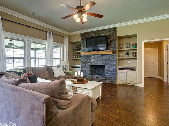 Immaculate home!! Like brand new. Engineered granite counters throughout home. Stone/brick fireplace. Beautiful hardwoods throughout, stainless steel appliances, breakfast nook, huge breakfast bar with storage and cabinets, dry bar area in kitchen, open floor plan (kitchen to living area). Huge laundry room with built-ins, cabinets and counter space. Split bedroom. Master bath has vanity area, his/her closets, jacuzzi tub and walk-in tiled shower. Fully fenced backyard.