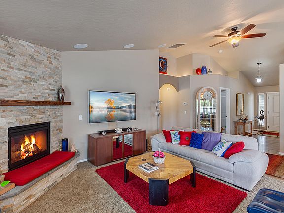 Single-level living in Strawberry Fields. 1,624 Sq Ft rancher with an open floor plan. 3 beds/2 baths. Built in 2013. Home features stainless steel appliances, gas fireplace with floor-to-ceiling stone, vaulted ceilings, and built-in speakers inside and out. The exterior features beautiful landscaping with a large covered patio. 20x30 shop with a paved driveway and RV parking. One of the few homes in the neighborhood to have a shop!