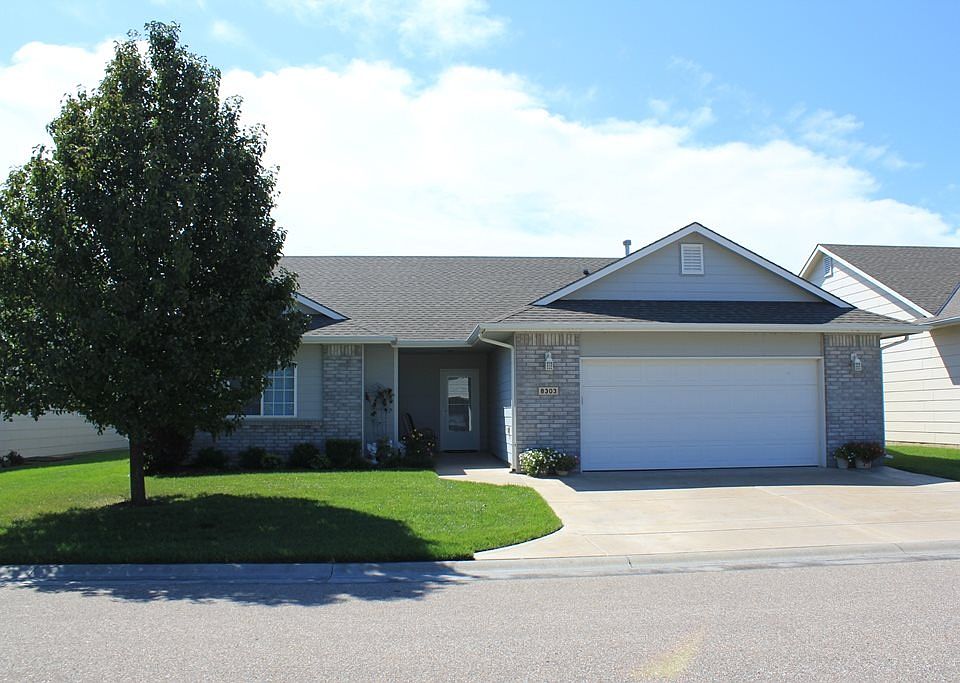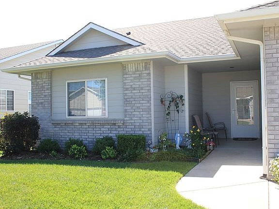 Welcome home! This wonderful patio home is located in West Wichita in a quiet, established neighborhood but minutes away from anything you need including shopping, restaurants and entertainment. Low HOA dues include trash service, snow removal, lawn care including mowing and irrigation, and some exterior maintenance. Zero step entry, split bedroom plan, 2 baths, 2 car garage and certified safe room in Master suite, concrete siding. 10 foot ceilings throughout gives this open floor plan a spacious feel. Living room, kitchen and dining flow together with a large window and slider door to covered deck. Perfect for entertaining. Kitchen has a large eating bar that overlooks the dining room, pantry, lots of cabinets, wood floors and appliances (disposal, over/range, microwave over range and dishwasher included). Smart storage is found throughout the home. Master suite is large and has a walk in closet that is a certified safe room with steel door. Master bath has full tub/shower with glass sliding door, long vanity with double sinks. 2nd bedroom is spacious and has a 2nd full bath nearby. Main floor laundry is a separate room with cabinets and hanging rods. Mechanical room is located in the oversized garage in a separate room. Enjoy your early mornings and/or quiet evenings sitting under the large covered deck. Patio homes in this area are very popular. Schedule your private showing today!